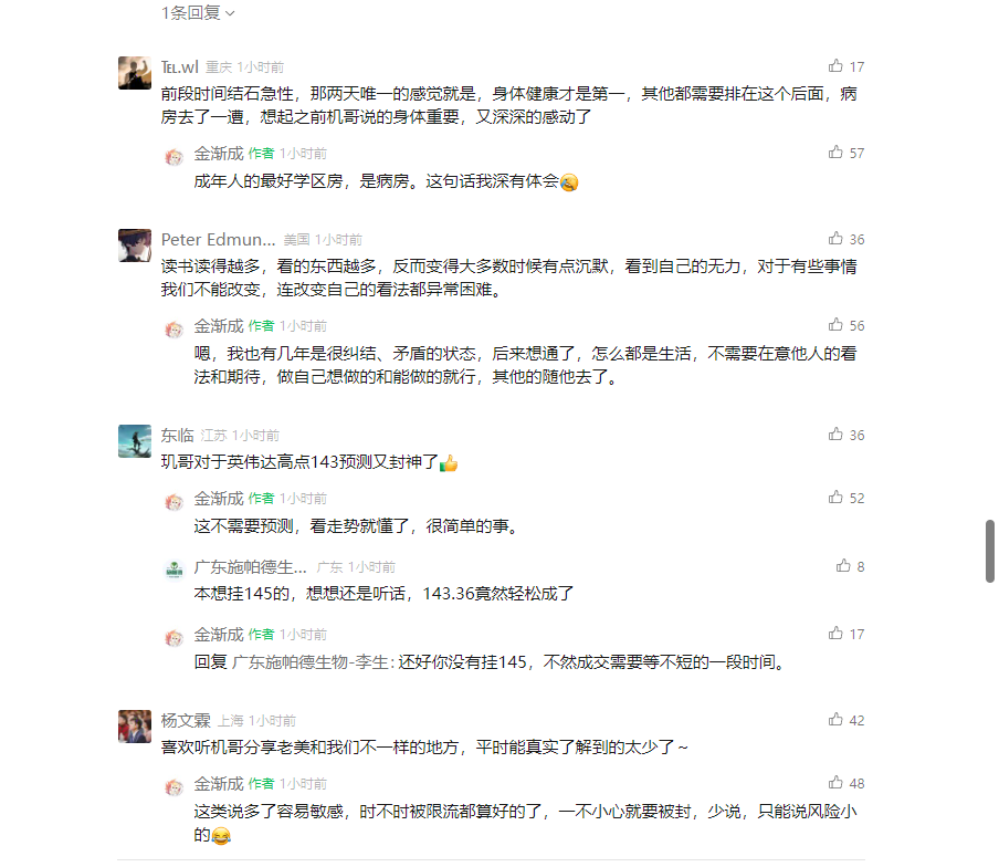 ᰔᩚ 云汐大人༊(江苏):市场永远是对的;抱着自己的对错进市场的人,都活不下来。那些动不动就爱抬杠的人,往往要么穷,要么是学生或刚入社会的小白。我很赞同